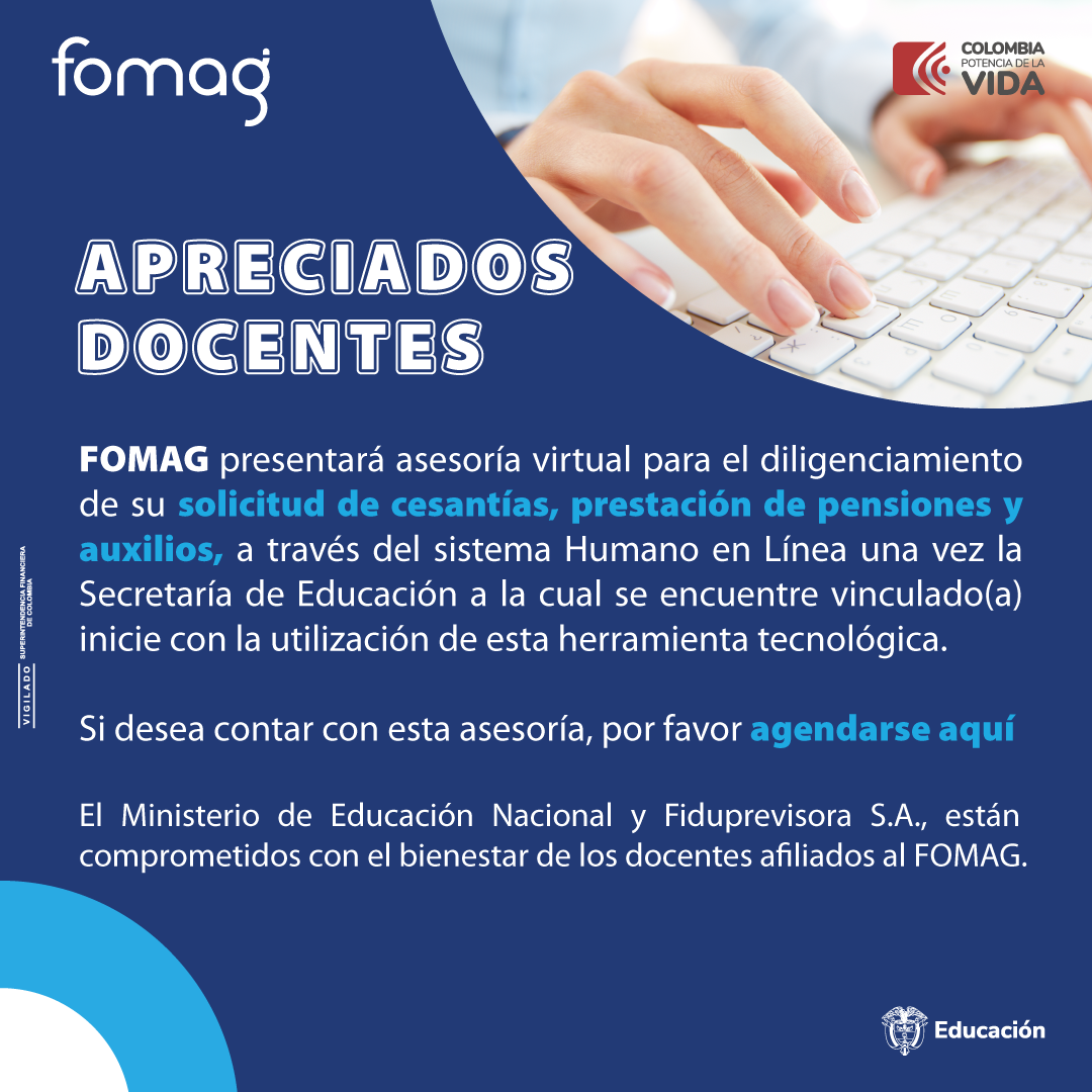 FOMAG prestará asesoría virtual para el diligenciamiento de su solicitud de prestaciones económicas a través del sistema Humano en Línea una vez la Secretaria de Educación a la cual se encuentre vinculado(a) inicie con la utilización de esta herramienta tecnológica.