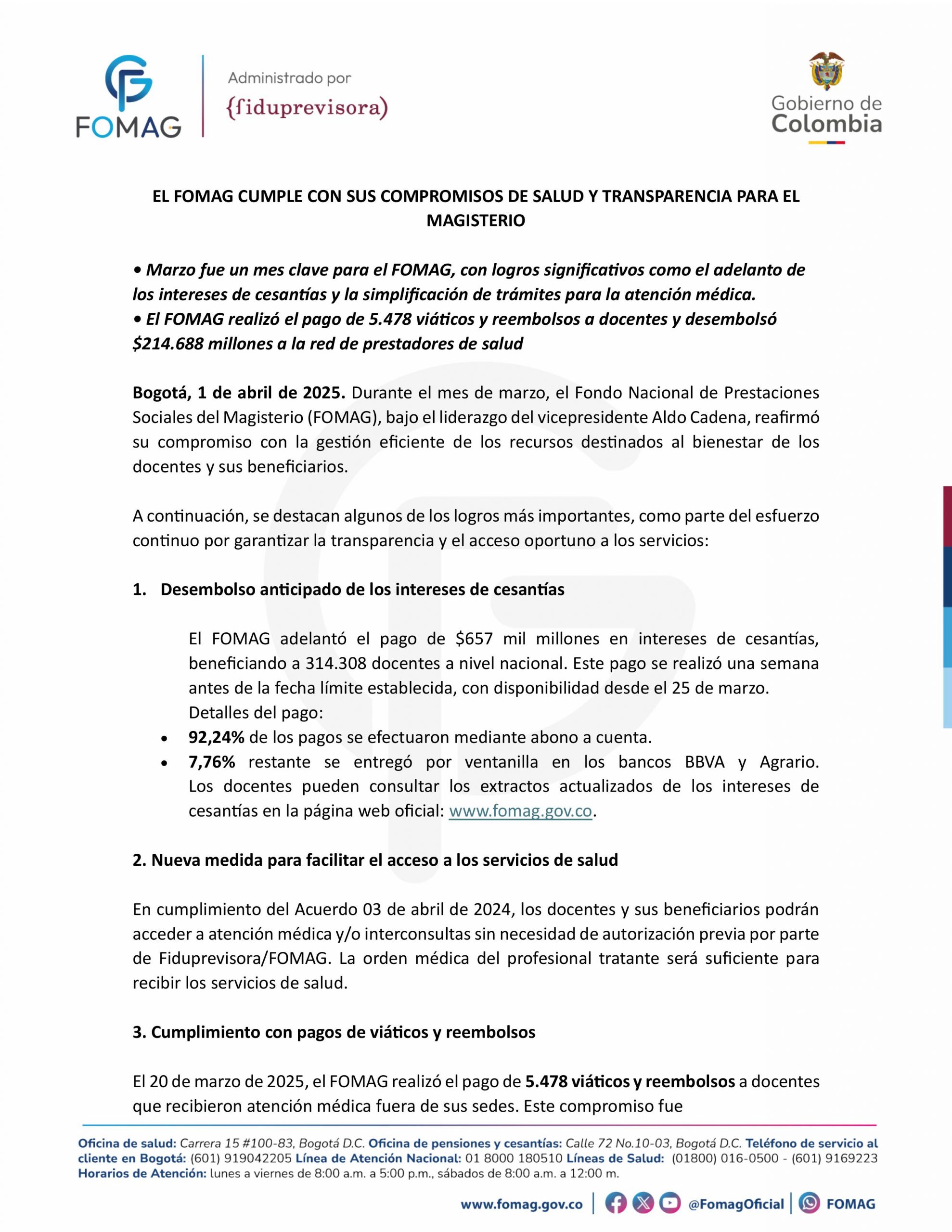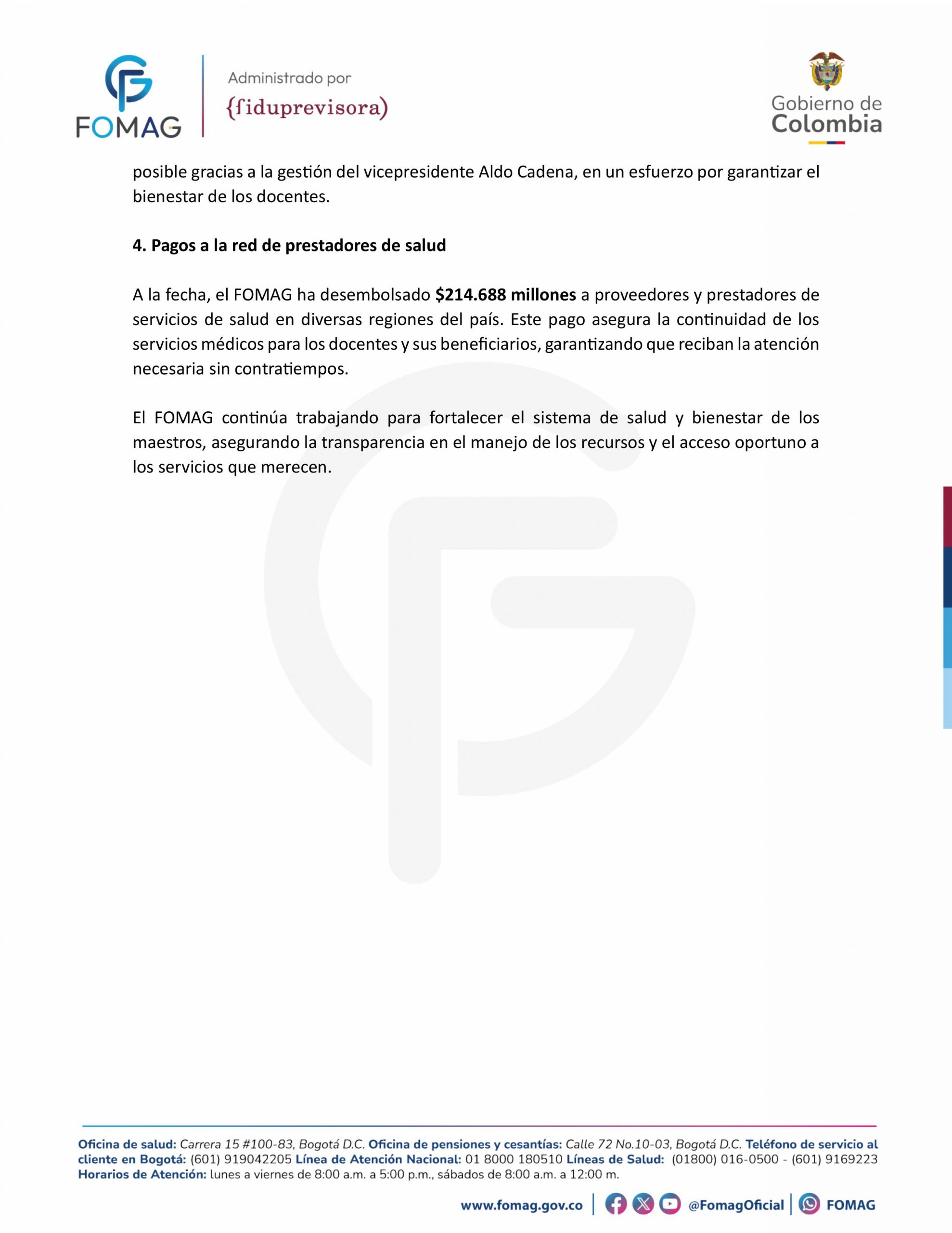 El FOMAG cumple con sus compromisos de salud y transparencia para el Magisterio