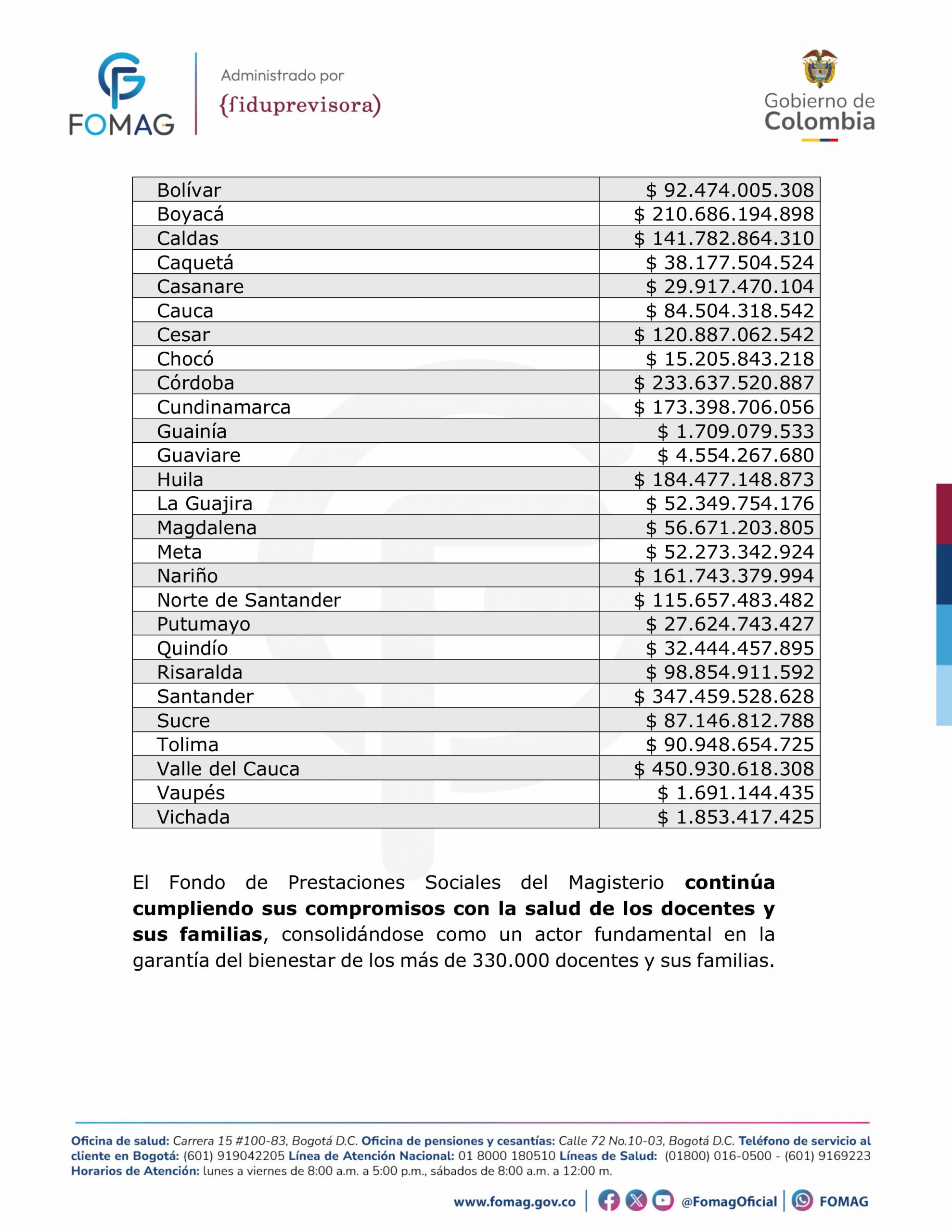 FOMAG ha girado más de $4,3 billones para garantizar la salud del magisterio colombiano