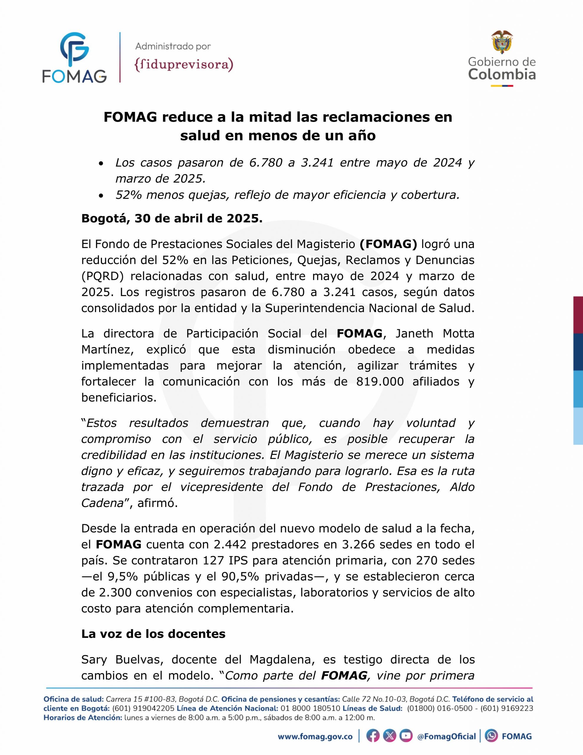 FOMAG reduce a la mitad las reclamaciones en salud en menos de un año
