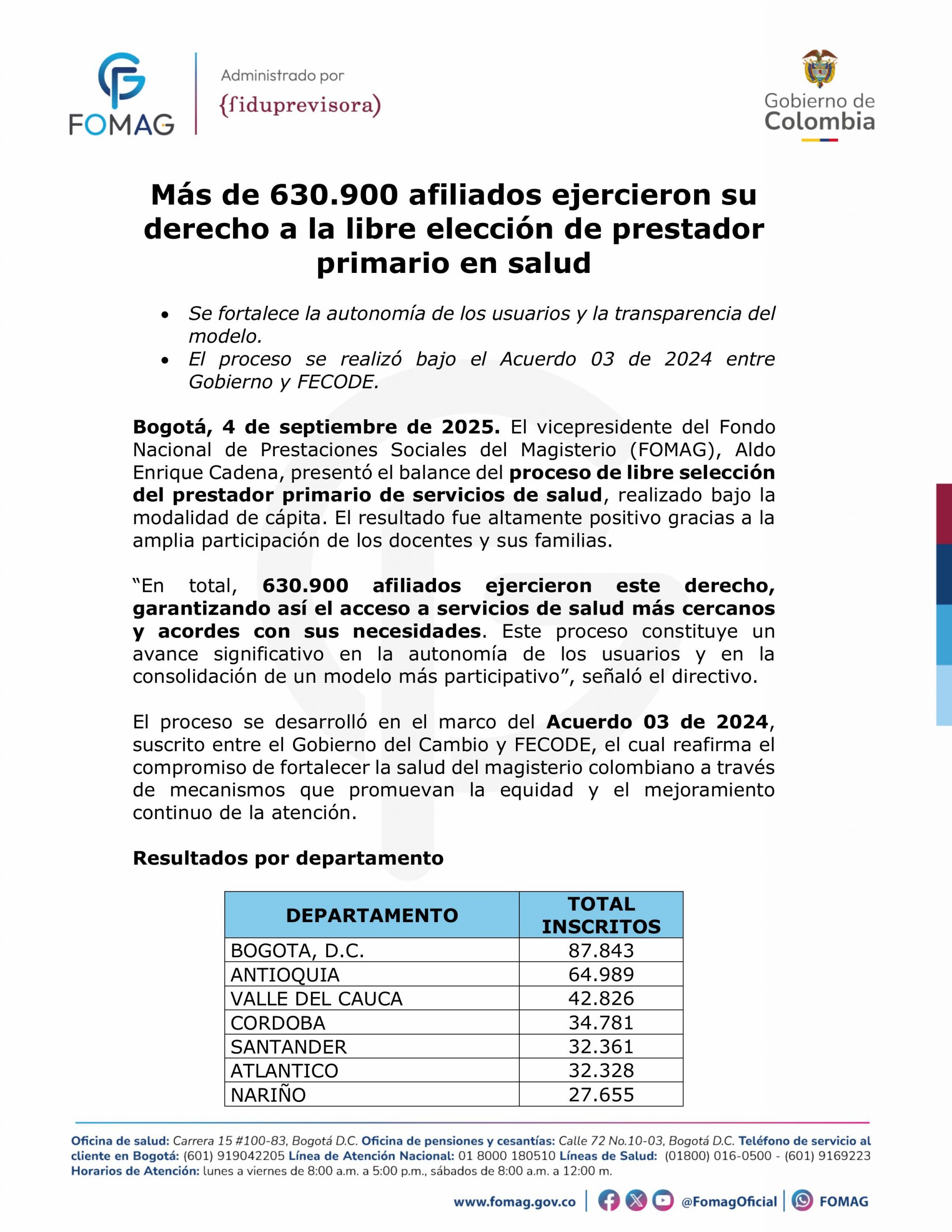 Más de 630.900 afiliados ejercieron su derecho a la libre elección de prestador primario en salud